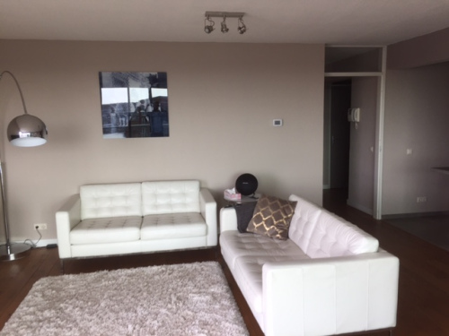 This modern large 2 bedroom apartment (82 square meters!) is located on the 9th floor of a modern apartment complex downtown Breda in a car free park zone. All cars are parked underneath the various apartmentbuildings and lot's of trees give you that " living in a park " feel.